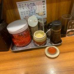 豚骨ラーメン屋ならではの、卓上の紅生姜を加えられるのが、味変の面白さに繋がります。